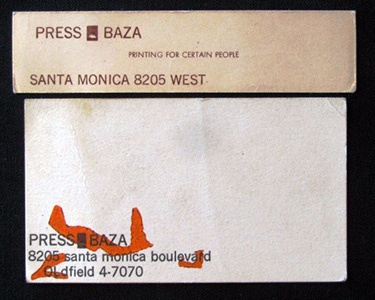 Alexander was born in Chicago and grew up in a Jewish family in the West Adams neighborhood of Los Angeles. By 1968, he was 45 years old and had led a peripatetic, Zelig-like life, having been consistently involved in or at the center of some of the more exciting cultural moments of the previous 20 years in California. He met Wallace Berman as a teenager and together they hung around jazz clubs, befriending Charlie Parker and other musicians. In his early years, he wrote and published poetry, worked as a sideshow barker on the Venice and Santa Monica piers and later as a jazz disc jockey who went on to manage the colorful musician Slim Gaillard. In 1950, with his first wife, he opened a store in the San Fernando Valley called Contemporary Bazaar, which sold objet d’art and jewelry, and housed an extensive collection of small print publications from all over the world. The Contemporary Bazaar—from which Alexander’s most popular nickname, Baza, was derived—also held backyard readings and performances, namely by the comedian Richard “Lord” Buckley. It never succeeded in selling much merchandise, but at the time, it was one of the few establishments of its kind in Los Angeles. During this period, Alexander met artist Ed Kienholz when, by chance, he happened to stop in at Kienholz’s studio near the Bazaar on Ventura Boulevard. He acquired some of his first assemblage paintings to sell at the store, and the two became friends. Later, through an introduction by Alexander, Kienholz and curator Walter Hopps would go on to found the original Ferus Gallery. Alexander—who chose the name “Ferus” (the Latin word for “wild”) from a dictionary—printed and designed all the early invitations and posters. He shared a studio with Wallace Berman called Stone Brothers on Sawtelle Boulevard, where, under the tutelage of Alexander, Berman learned how to use a hand press and made the first copies of his magazine, Semina. Alexander also had a publishing project at the time, Press Baza.8