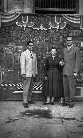 Charles and Ray Eames in Delhi, India, 1958, with scholar Pritwish Neogy.