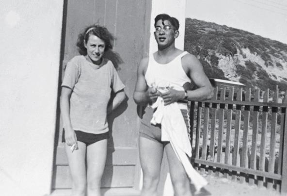 Esther McCoy with Marshall Ho’o at Zuma Beach in Malibu, circa 1933, from the Archives of American Art, Esther McCoy Papers.