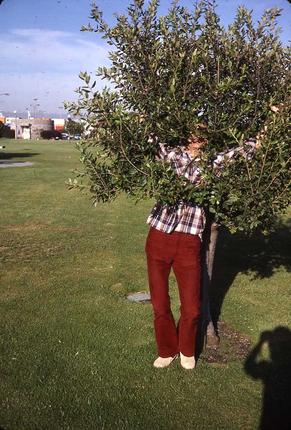 Artist George Herms at Portview Park, Oakland, CA, 1979. Photograph by Alberta Mayo.