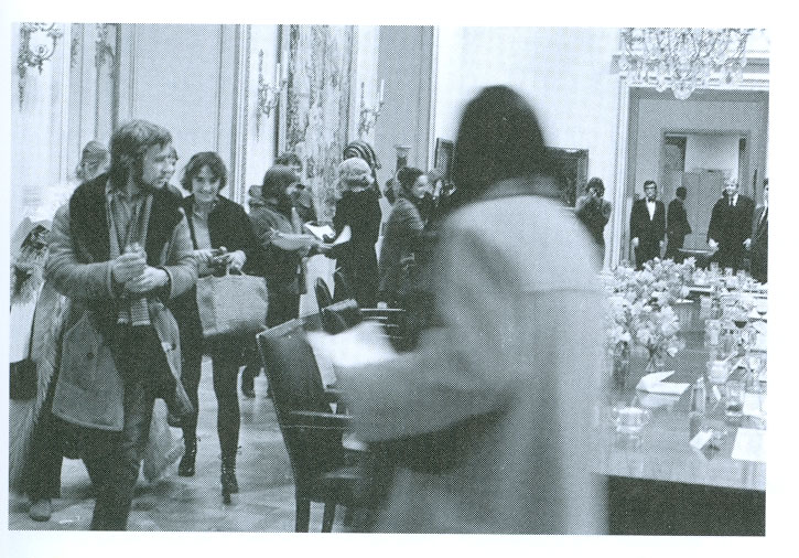 Photo: Kestutis Zapkus, Lucy Lippard, Jean Toche and other members of the Art Workers Coalition break up a trustees’ meeting at the Met, January 12, 1971. Zapkus holds a container of cockroaches, which he then released onto the table. Photo by Jan van Raay.