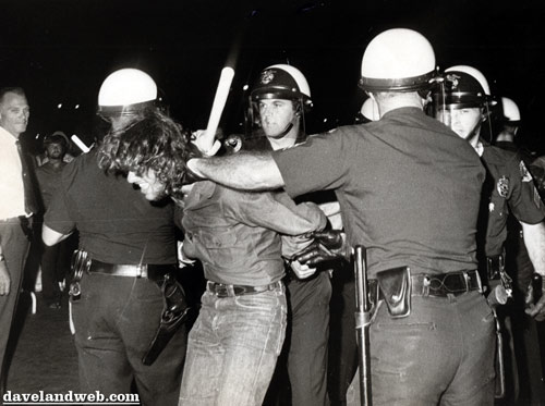 On August 6, 1970, the Yippies (shorthand for the anti-war group known as the Youth International Party) gathered at Disneyland to mark the anniversary of bombing Hiroshima, and to protest the Bank of America, a sponsor of Disneyland and supporter of the Vietnam War. On the day’s schedule was a Black Panther hot breakfast, a feminist liberation of Minnie Mouse, and a smoke-in on Tom Sawyer’s island. After the smoke-in, Yippies got into scuffles with the police, and Disneyland closed five hours early. The site below offers more photos of the infamous day, and recollections from witnesses, such as Barry, a former cast member of Disneyland, who said: “It was a long day and nothing really happened in my area until late afternoon. A Conga line was forming and about 25 or more Yippies snaked through the Main Street hub area chanting “LSD has a hold on me.”