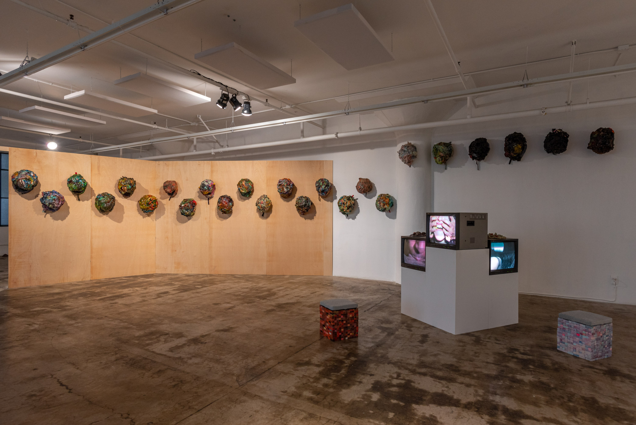 Ezequiel Olvera: The textures and patterns I see repeating across your art practice remind me of radioactive tumors that boil and spill out, like in the nuclear horror flick The Hills Have Eyes (2006). The throughline I see is the liminality between life and death—a space that is giving, generative, and painfully transformative. There’s a correlation between the repugnant mutations and identities, be they sexual, biological, cultural, or intellectual—notions and perceptions need to be born anew from fungi or maggots. I’m thinking specifically about your 2022 exhibition “Mountain of the Collapse” at JOAN where you had these sculptures of motorcycle helmets foaming out with organic material installed next to CRTV monitors featuring videos of people sucking on each other’s tongues (Tongue Job, 2013) and other corporeal works like Gum Teeth Probing, 2015). Would you say your work uses physical decay and mutation as metaphors for psychological processing—like a visual form of psychoanalysis?