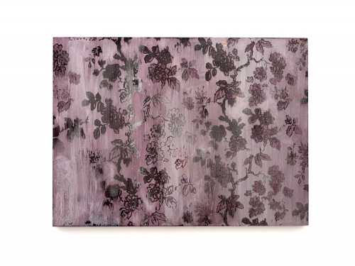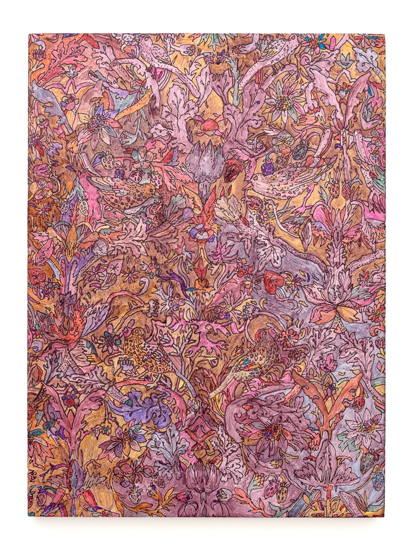 EO: In your 2024 show “dark dark room” at Artist Curated Projects, you explored floral wallpapers. Victorian and Baroque wallpaper are almost like scenes in still lives with a variety of botanical life. Did you dig into the history of American and European wallpaper while you were making these works?