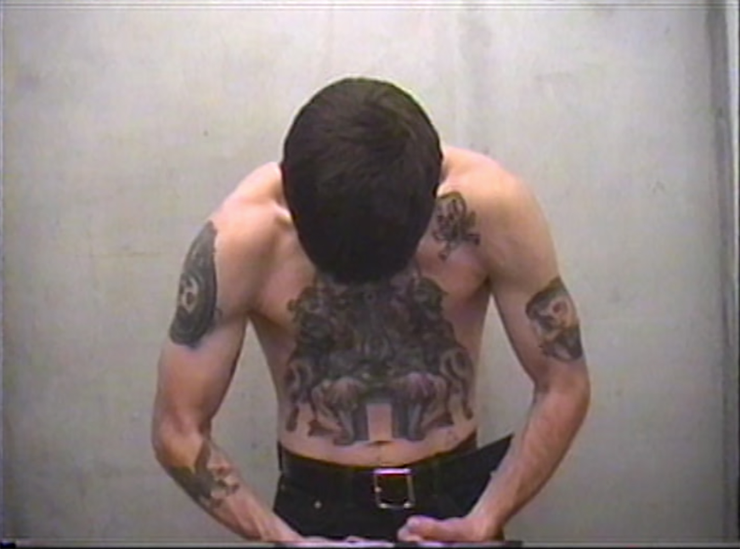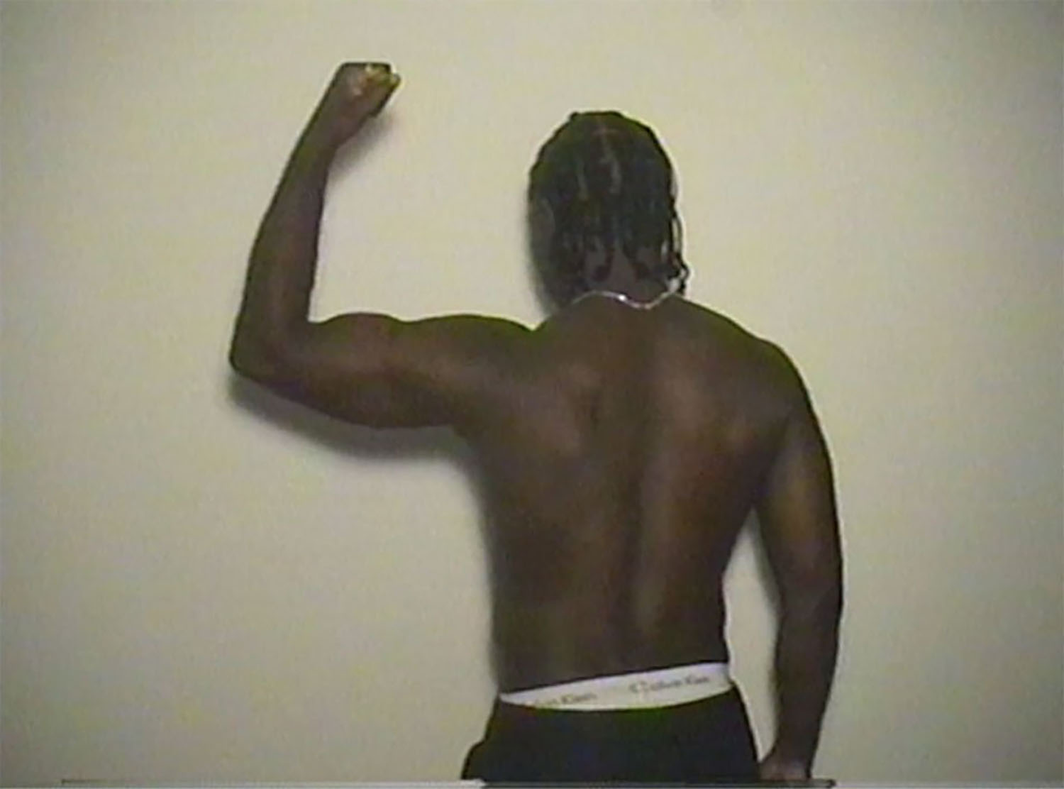 Aimee Goguen, Flex Video (Tom), 2020 (still). Hi-8 on SD video, color, sound by Angel Zinovieff. Image courtesy of the artist.