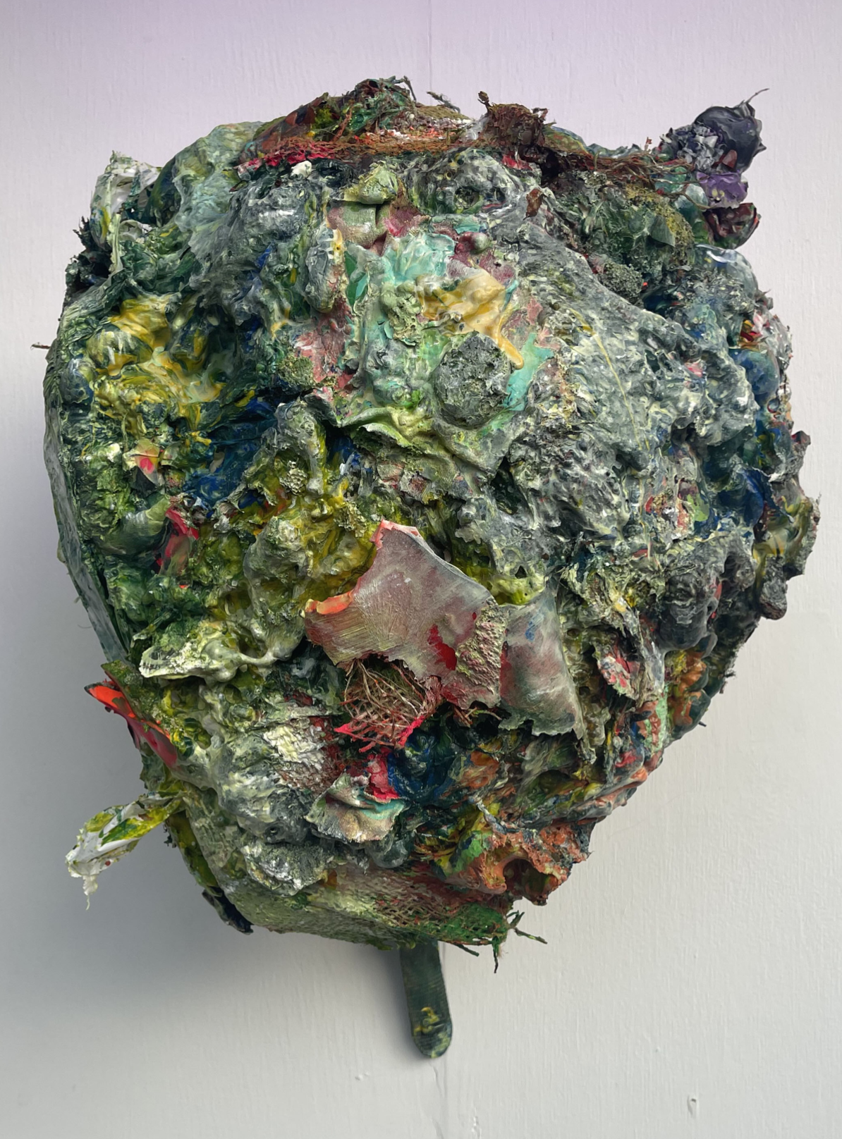 Aimee Goguen, street walker, 2020. Recycled materials: fiberglass, latex, leather, rubber, burlap, foam, cotton, mummy tape, glue, wax, crayon, trash bags, crust, slime, spray paint, melted children’s toys (from childhood), plastic, trash, sludge of the earth, acrylic, gouache, 12 x 11.1 x 14.3 in. Image courtesy of the artist and JOAN Los Angeles. Photo: Christopher Wormald.