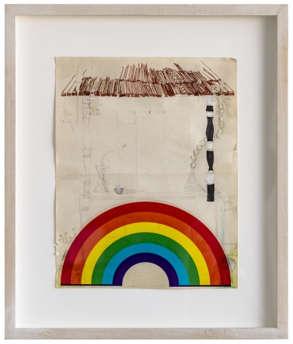 These processes of viewing filter through Becker’s work, in a state of study and also of paranoia. The back room of Researchers seems to be occupied by a ‘Researcher’ character, evident in the detailed notes they’ve written, like a professor or a therapist, about the supposed inhabitants of the miniature models. The CalFed bank permanently hovers over Becker’s shoulder. The work’s perspective also always seems to be from above, with its buildings in miniature, and its drawings relating the open emptiness of a birds-eye landscape. This extends outside of Researchers to drawings such as Untitled (Roller Coaster Scaffolding) (2000)35and Helicopter (1999). The helicopter especially is a vantage point familiar to L.A., and one which goes hand in hand with images of the city’s destruction, from T.V. footage of the 1992 riots to Ed Ruscha’s 1965 painting L.A. County Museum on Fire to the burning flare stacks in the opening shot of Blade Runner’s post-apocalyptic skyline. As posed so succinctly by Norman Klein, “L.A. is supposed to die by fire, earthquake, suffocation, amnesia, in the dark, in a movie theater, or in some way seen from a distance.”36Becker thus keeps us at arm’s length from destruction. She shows us from far away what is still standing: the models in Researchers have not yet collapsed, her later drawings—dream house accessory and the watering series—glimmer with iridescent paper. This is Sabrina Tarasoff’s overarching opinion on Becker’s work, that it “is moved by the tendency of lives to sink downward, smash, and still somehow survive.”37Perhaps more accurately, it is a lesson in how to teeter on the edge of everything forever.