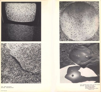 Bruce Conner reproduced his now famous life-size photograms of his body. Paul Kos showed photographs of his hands with rocks used to shape ice into a lens that the sun is shining through to create fire.3Jim Melchert made pencil rubbings of the backsides of photos, and in handwriting below them he described the figures in the photos. Linda Montano is shown in a photograph standing between her parents on the day she took the veil and joined a convent.4Other San Francisco artists included were Fred Martin, William T. Wiley, Terry Fox, Paul Cotton, Howard Fried, Bonnie Sherk, and myself.